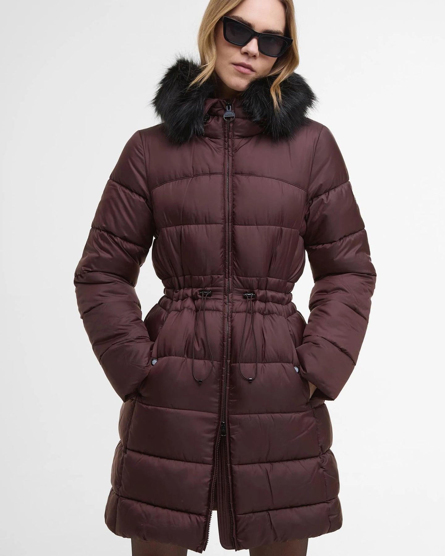 The B.Intl Anastasia Puffer Jacket boasts a flattering drawcord to the waist for a feminine silhouette. Engineered with baffle quilting for premium warmth, this jacket is the perfect layer for cold-weather conditions. Contemporary styling comes courtesy of the detachable hood, while a sleek logo badge to the arm and contrasting trims give it an urban edge.