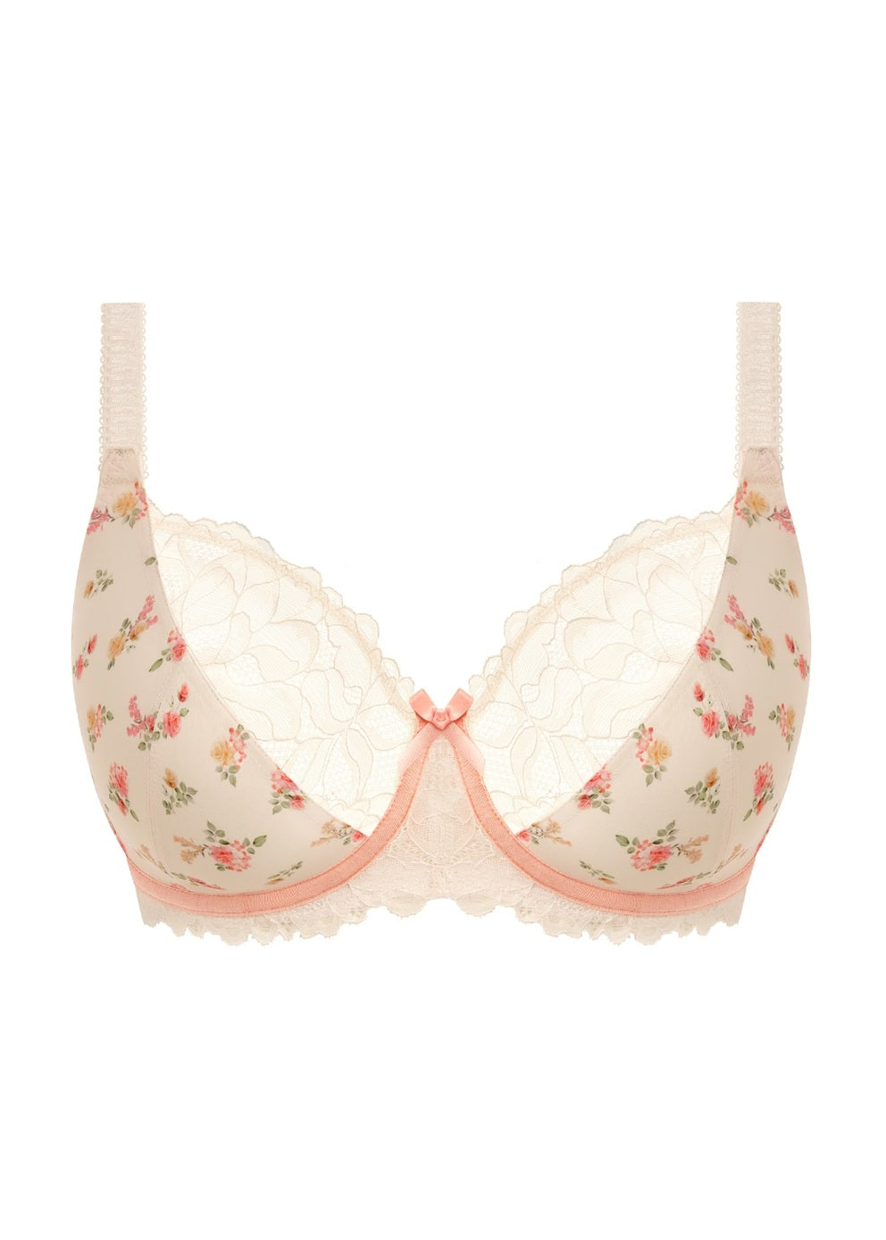 Let your lingerie drawer bloom this season with the Cherish Me Plunge Bra in Rose Delicacy. This style celebrates softness and femininity, crafted in a fresh floral print designed exclusively in-house. Delicate pale peach lace frames the cups, adding a romantic finish that perfectly captures the essence of sunnier days. With its flattering plunge silhouette and light, breathable fabric, this bra is made to feel as beautiful as it looks.