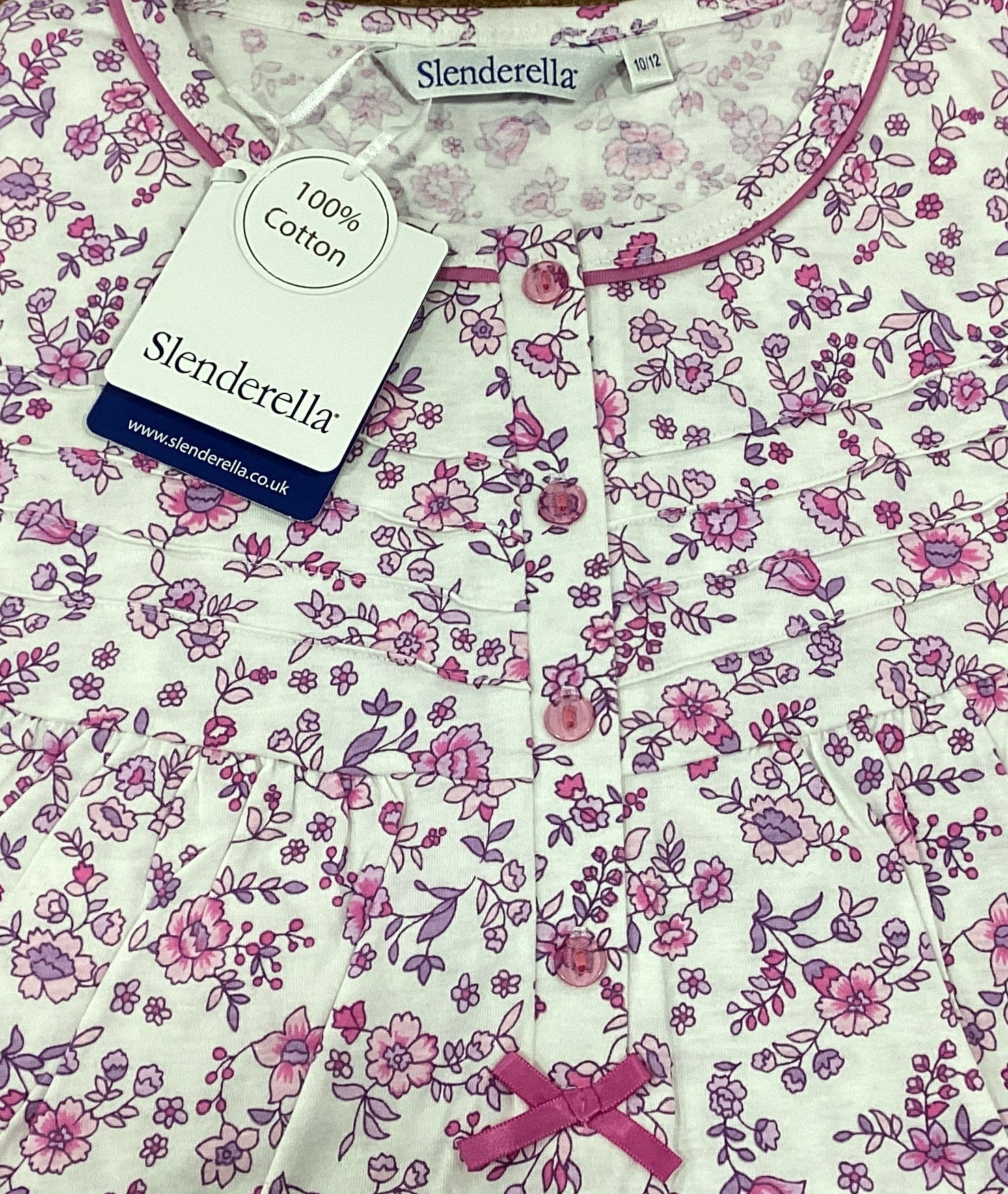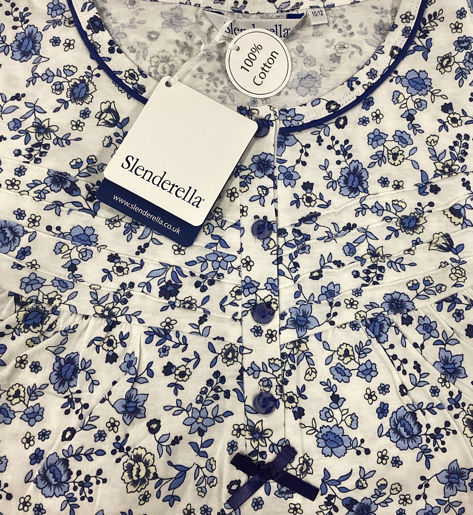 Crafted from 100% warm cotton jersey with a ditsy floral design, this luxurious nightdress boasts a round-neck with delicate pintuck detail to the V-Yoke, 4-button placket, short sleeves, and a small bow to the front, combining comfort, elegance and ease of dressing.