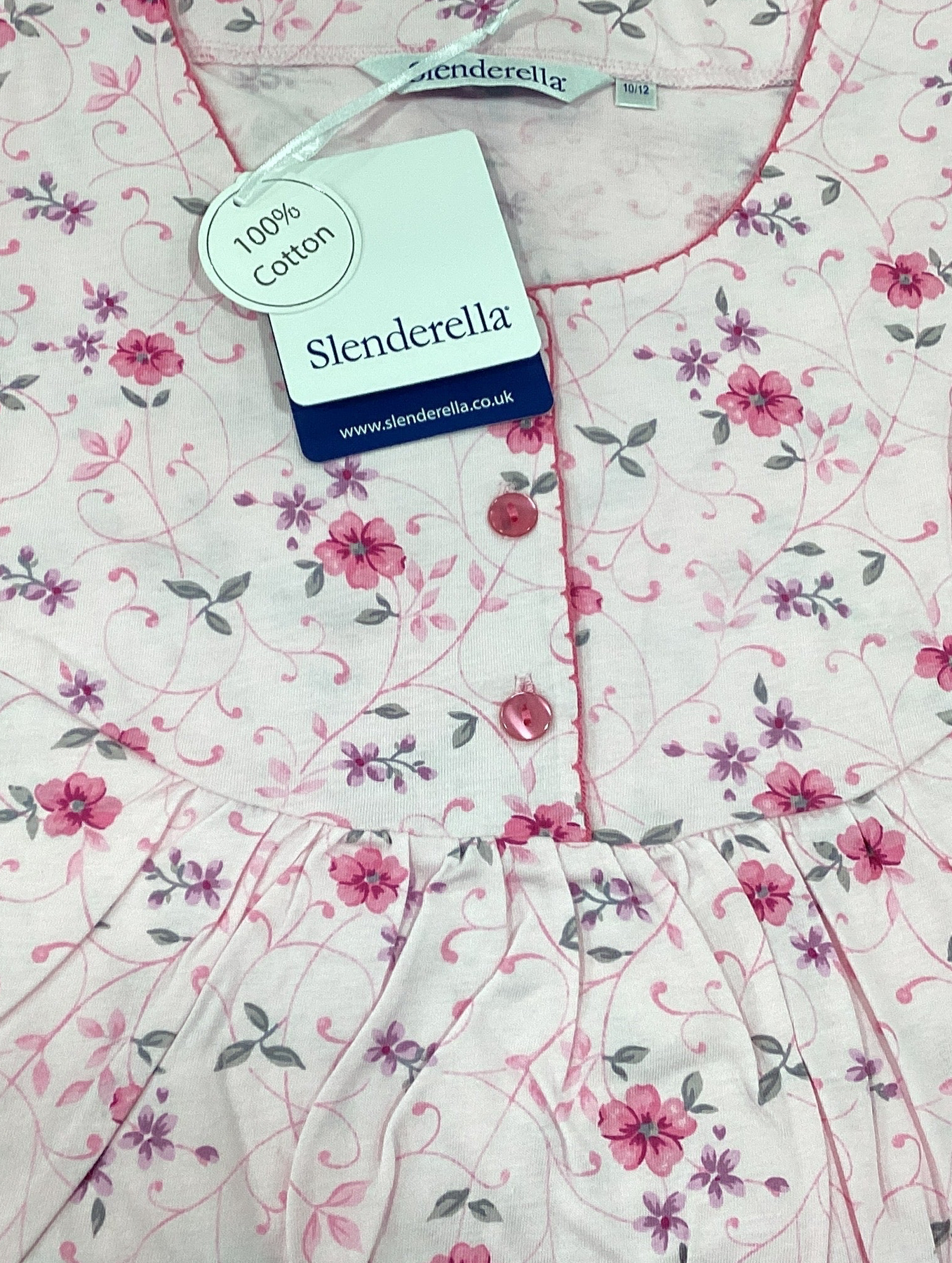 Slenderella Floral Short Sleeve Picot Trim 42” Cotton Nightdress
