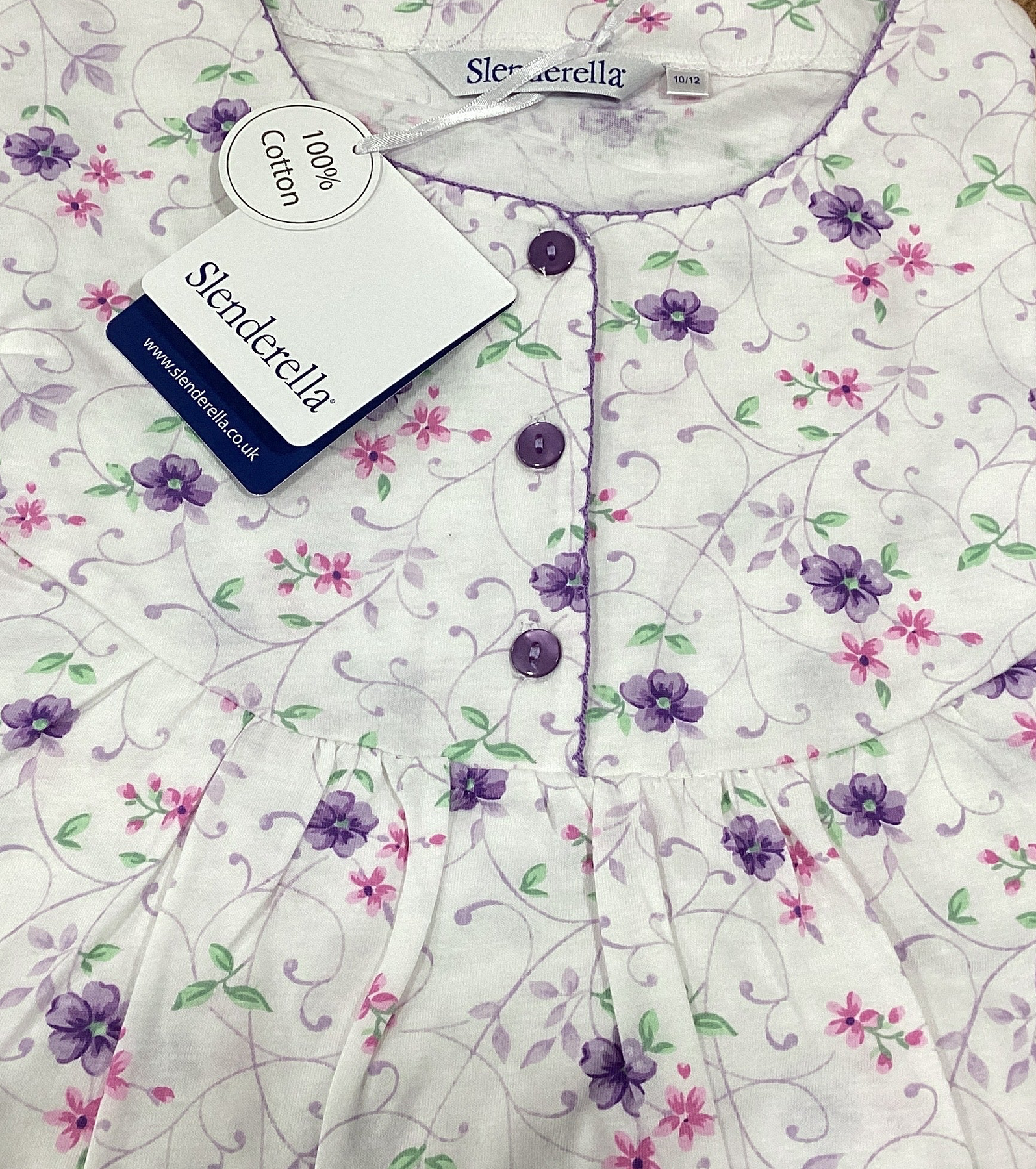 Crafted from 100% warm cotton jersey with a beautiful floral scroll pattern, this luxurious nightdress boasts a round-neck with short sleeves, and buttons to the front, combining comfort, elegance and ease of dressing.
