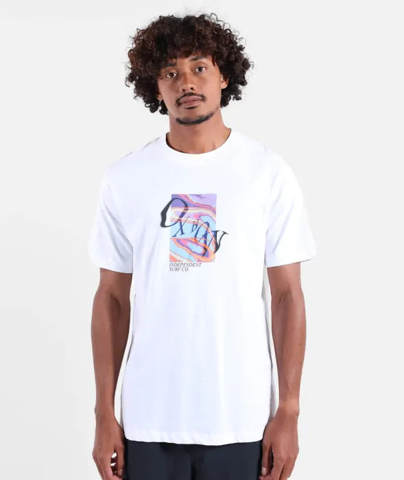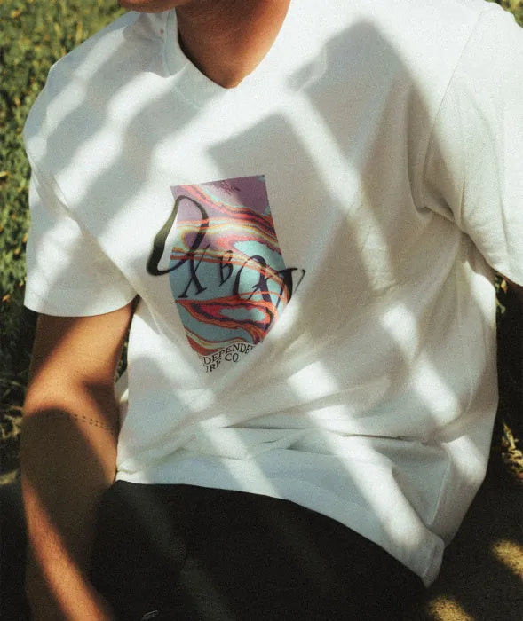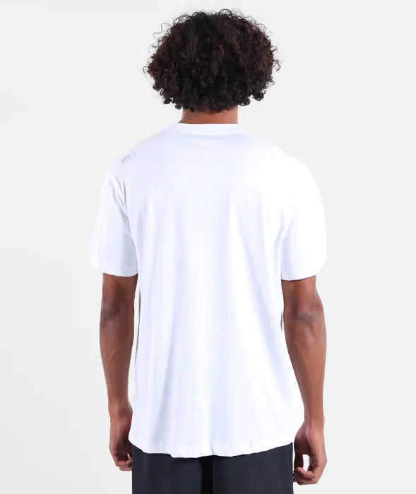 Crew-neck T-shirt, graphic print on the back with chest accent, woven label at the bottom, organic brushed cotton jersey.