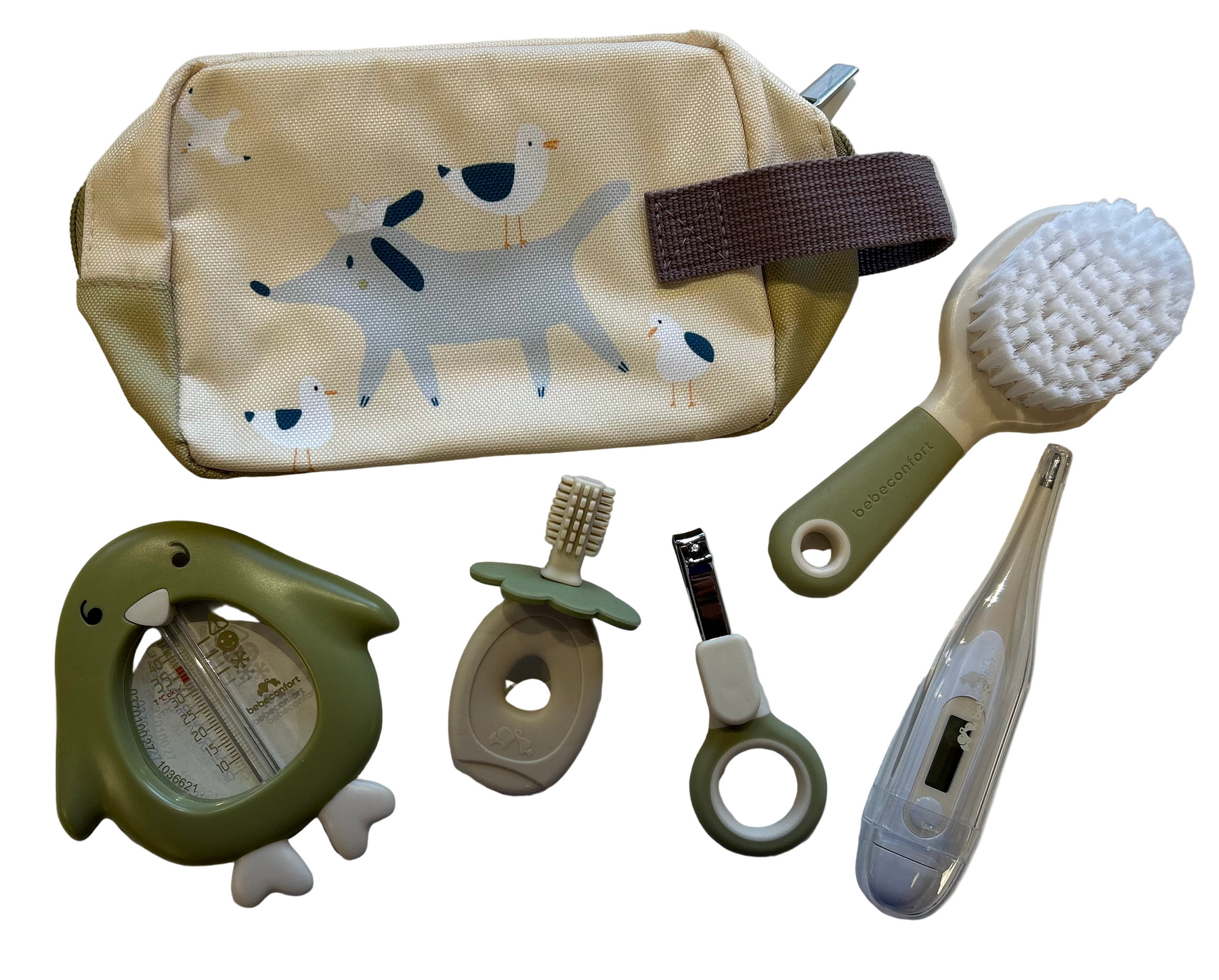 For everyday care of baby, discover Bebeconfort's baby toiletry set with all essential accessories from baby’s birth and through its early years. This practical case has clever storage facilities. With a high quality and compact case, this complete set is ideal for new parents. The case comes in a playful decor with modern colors and soft finishing. Useful at home or during travel. Can be cleaned with a sponge, this set is ideal for gift!