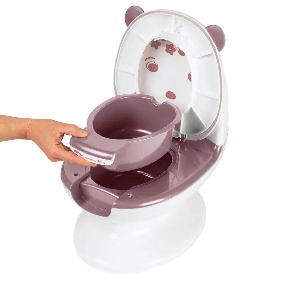 The Mini size toilet is made for everyday ease. It's not only super easy to use for both boys and girls thanks to the lift-up seat and deflector that acts as a splash guard, but it's also easy for parents too. The removable bowl makes cleaning a breeze. The toilet also features an anti-slip base that keeps it stable and securely in place when your little one's doing their business.
