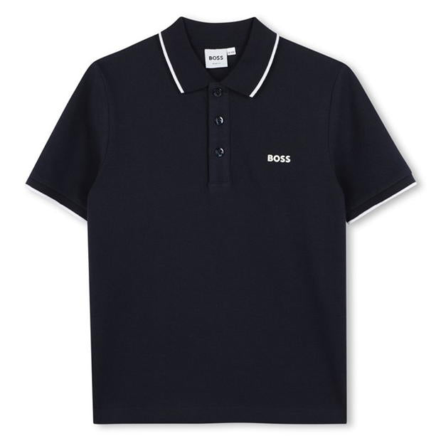 A timeless addition to any young wardrobe, this BOSS polo shirt brings signature style to casual looks. The classic design features contrast tipping along the collar and sleeves, creating a smart finish that works for various occasions. The small logo detail on the chest adds that distinctive BOSS touch without being overwhelming.