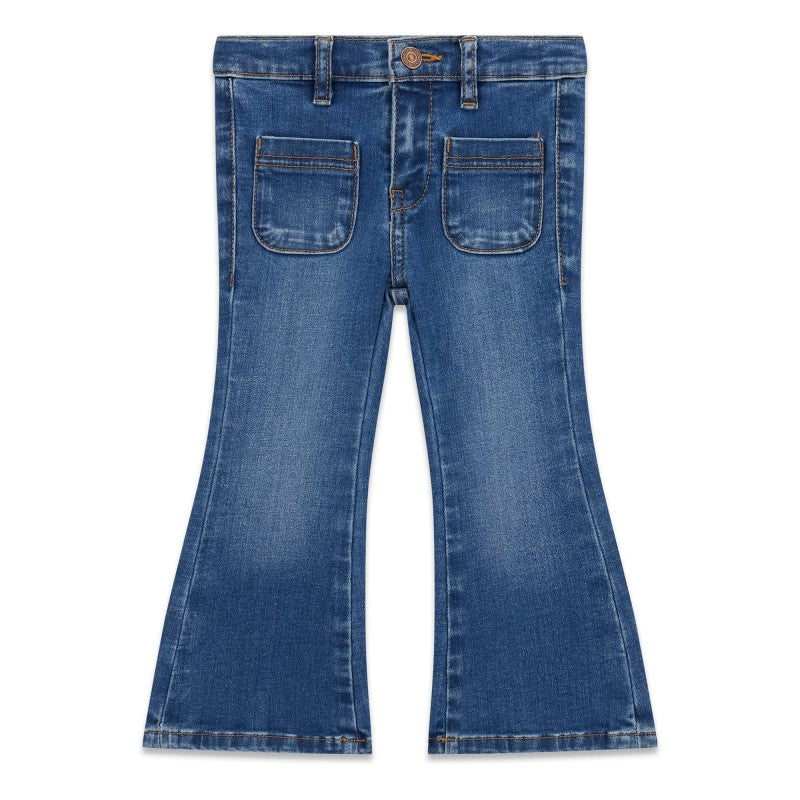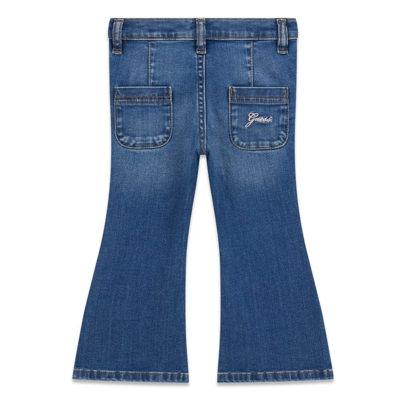 Get Guess flared jeans for girls with logo embroidery from the Spring-Summer 2026 Collection! Flared jeans for girls with front and back pockets, button closure and logo embroidery on the back pocket. Kids' jeans made of comfortable material.
