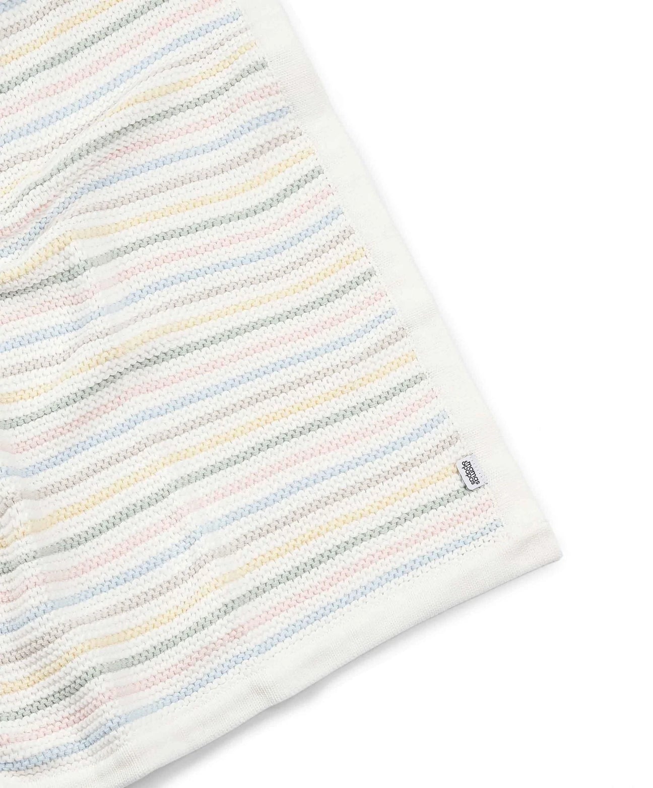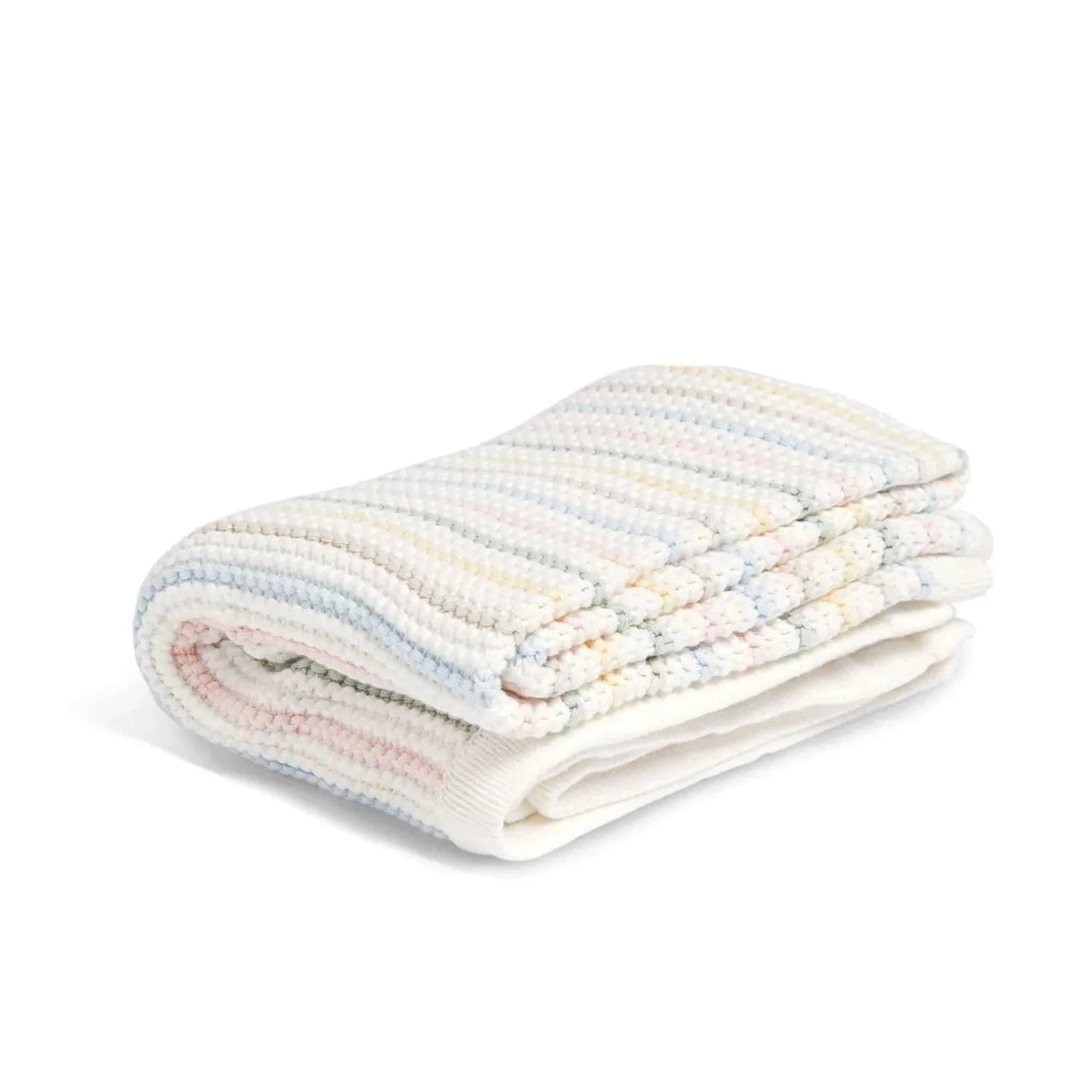 Whether you want to keep baby warm on strolls out, cosy on days in or snuggled up at bedtime, our small knitted blanket is ideal. Soft and cosy, the soft pastel design pops and knitted finish makes for a comfortable companion. Suitable from birth.