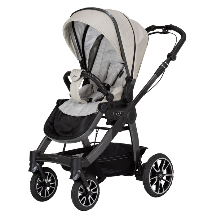 Mercedes All-Terrain GTR Stroller is the perfect choice for sports-loving parents. Ideal for off-road use and walks in the country thanks to full grip tyres and handbrake. Highly manoeuvrable with a compact fold.
