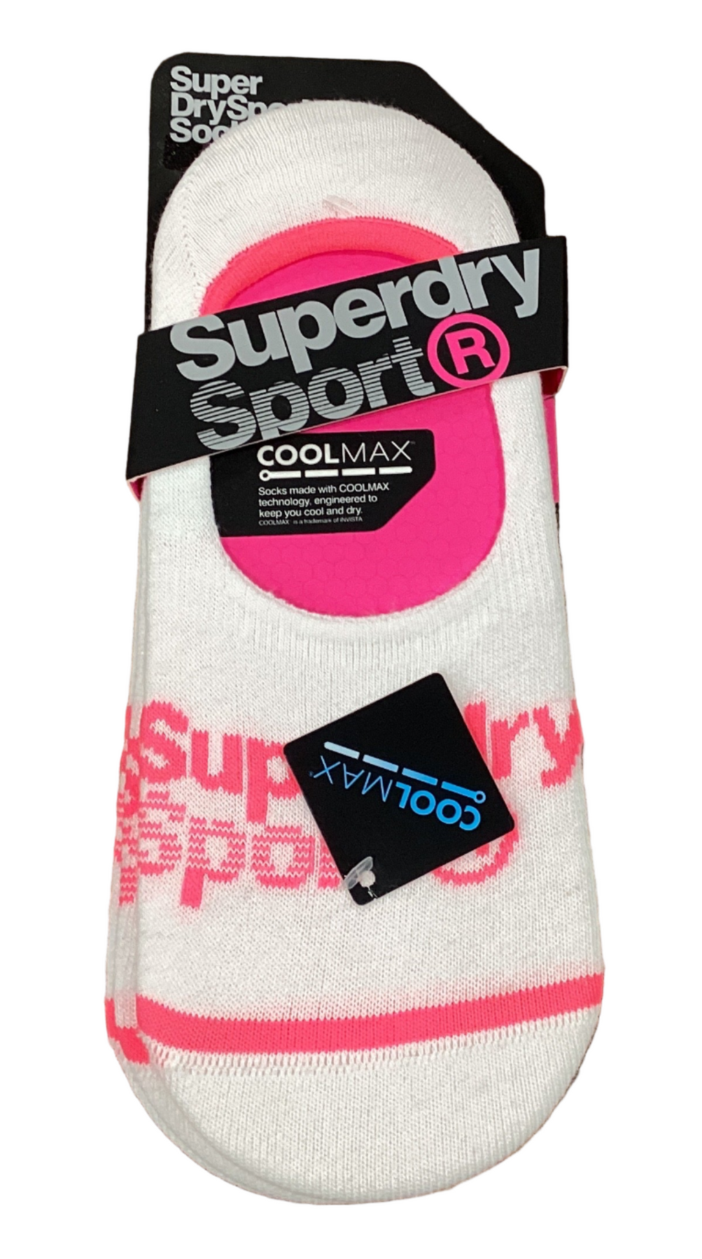 Superdry women's Coolmax invisible sock 3 pack. These soft ankle socks are made with COOLMAX® technology, engineered to keep you cool and dry, and are finished with a Superdry logo print across the front.