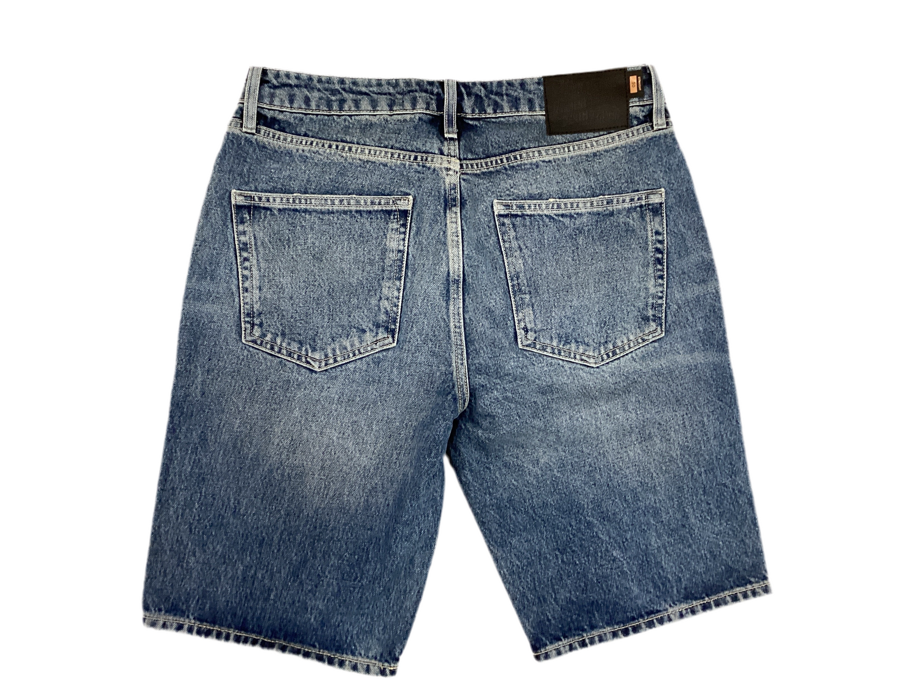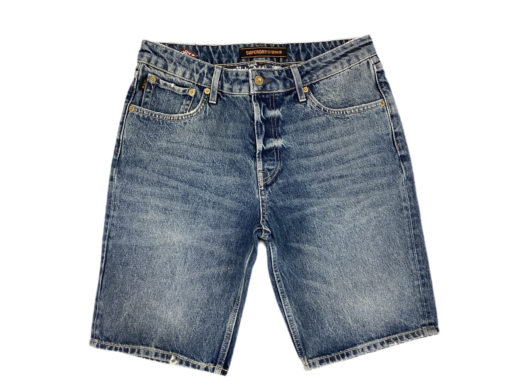 Superdry men's 05 Conor taper shorts. These classic denim shorts feature a five pocket design, a zip and popper fastening and belt loops. Finished with a faux leather Superdry logo patch on the back.
