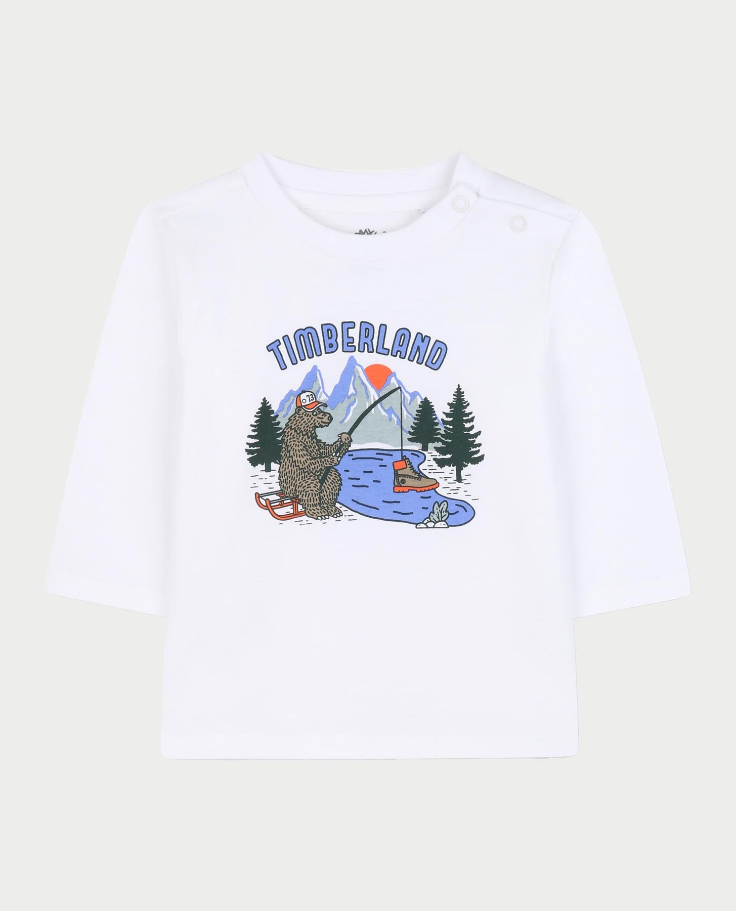 This Timberland long-sleeve T-shirt combines comfort and practicality. Its soft material is perfect for little ones, and the open shoulder design makes it easy to wear. The printed artwork on the front adds a touch of fresh style.