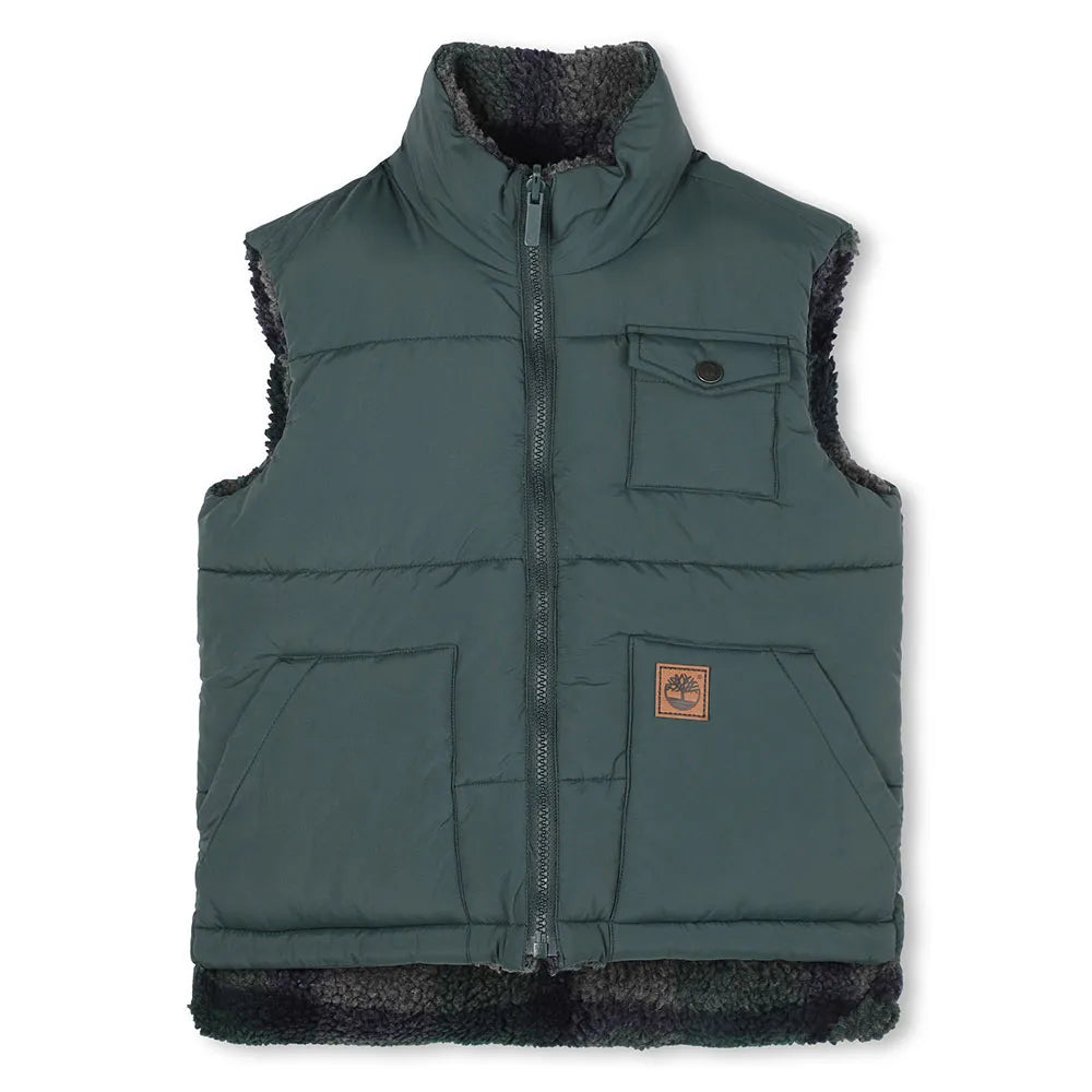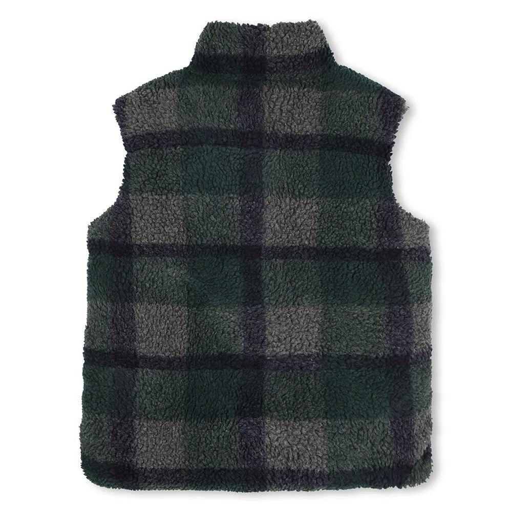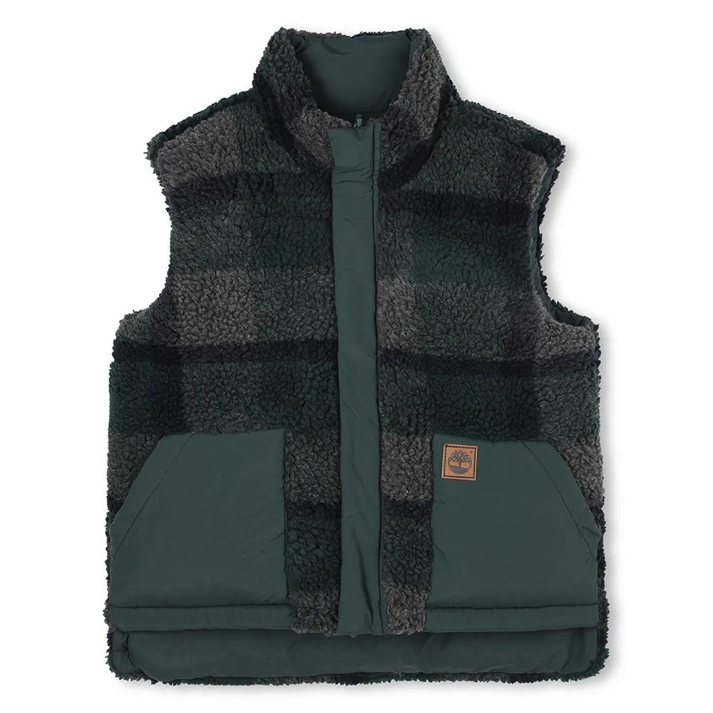 1 side in checkered faux sheepskin, front pockets with printed logo label.