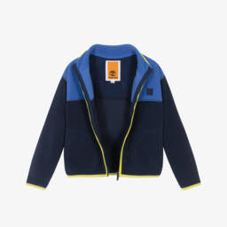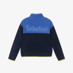 Colourblock fleece zip-up top for boys by Timberland, in contrasting shades of blue with vibrant yellow trims. An ideal layer for chilly days, this casual wardrobe essential is made in soft polar fleece. The full-length zip provides easy fastening, while the high collar offers extra warmth and the side seam pockets add a practical finish. A rubberised logo on the front and a large cut-out logo across the shoulders give instant brand appeal.